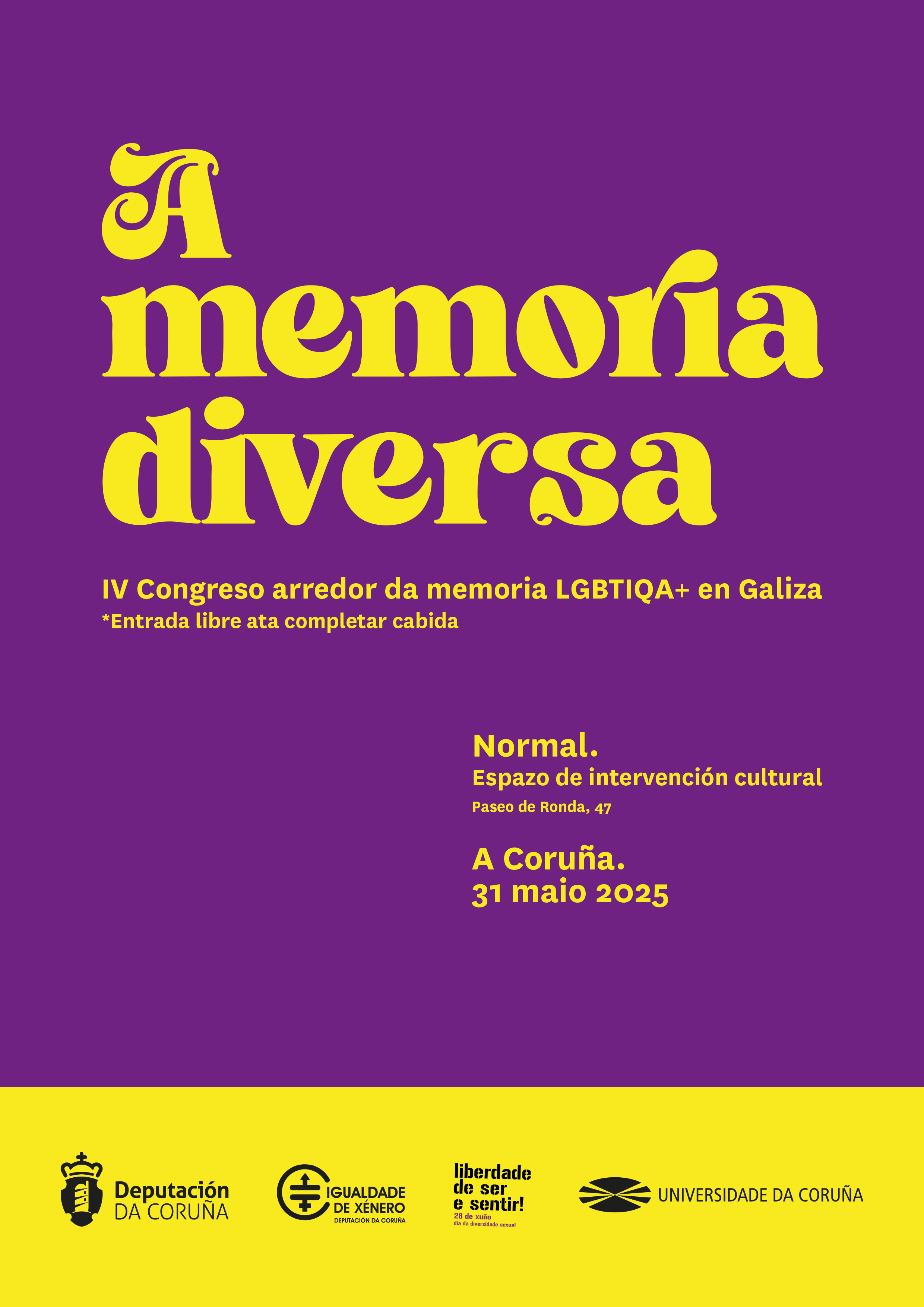 Esta nova edición, terá lugar o sábado 31 de maio no Espazo de Intervención Cultural "A Normal" na Coruña. Terán acceso de balde ata completar cabida.